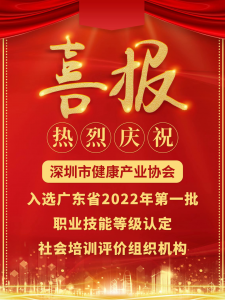 喜報:熱烈祝賀深圳市健康產業協會入選廣東省2022年第一批職業技能等級認定